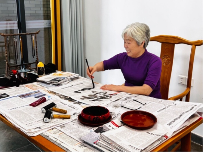 2月19日下午,广州市老人院书法房中,许琼珠老人正在练书法。谭琪欣摄